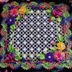 Yazmalarınıza yemenilerinize tülbentlerinize ve yazmalarınıza birbirinden şık oyaları göreceğiniz bir galeridesiniz.. İlk modelimiz mor ve beyaz çiçeklerle bezeli boncuklu iğne oyası tülbent kenarı modeli, iğne oyası bilenler için çok şık iki model.. Beyaz yemeniye yapılan kalın motifli iğne oyalı bir yemeni oyası da hoş görünüyor.. Rengarenk çiçek motifli yazma oyası beyaz zeminli renkli desenli yazmada hoş bir kombinasyon olmuş.. Renkli beyaz pembe mor gül motifleri görüyorsunuz siz bir şekilde eklemesini biliyorsunuzdur eminim bende fikir vermesi.. Düz yazmaların üzerine rengarenk iğne oyası fikirlerini de gördüğünüzde hemen örmek için işe koyulacaksınız bunu bir kaç örneğini galerimizde görebilirsiniz.. Tığ ile örülen çiçek motifleri eminim daha kolay örebileceğiniz örneklerdendir, bunlar içinde birbirinden güzel pembe beyaz çiçekler yeşil yaprakları olan, turuncu basit bir model olan ince yazma oyası, pembe beyaz ve siyahın kullanıldığı şık yazma oyasını, yine düz zemine renkli desenlerin olduğu yazmaya işlenmiş rengarenk çiçekli yazma oyasını, sık iğne ile yapılmış pembe çiçekli yeşil yapraklı tülbent oyasını örnekleri de tığ ile örebileceğiniz bir kaç fikir bunları ve daha fazlasını görmek istiyorsanız eğer galerimize bakabilirsiniz..