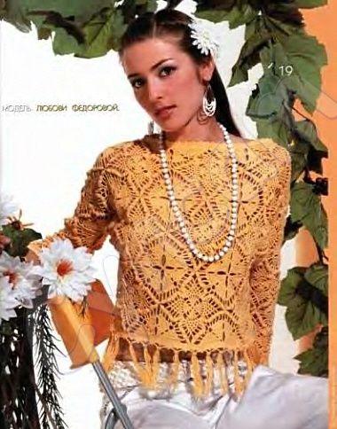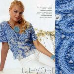 Birbirinden farklı, renkli ve zevkli tasarımlardaki bayan yazlık örgü bluz modellerimizin ilk sırasında çok güzel bir model var tığ il örülen yazlık bluz küçük küçük motifler ile oldukça fazla emek isteyen bir tasarım, yaprak ve çiçek motiflerinin birleştirilmesi ile oluşan bluz da yuvarlak yaka kullanılmış, yarım kollu tasarlanan bluz klasik giyim için de spor giyim içinde uygun bir bluz modeli. İkinci model ise ilk modelimiz ile aynı örnekte olmasına rağmen yakada v yaka kullanılmış ve yaka ayrıntılarına daha çok yer verilmiştir. Ön yakası gibi sırt yakasında da v yaka modeli kullanılmış, her iki yakada da küçük bir motif ile iki yaka birleştirilmiştir. kolye olarak da aynı renk tonlarında yuvarlak bir kolye ucu kullanılmış ve bluz ile kombine oluşturmuştur. Diğer bluz modeli örgü ve işlemenin bir eseri olarak karşımızda göğüs ortasından ikiye ayrılan renk seçimi ile file modeli örülmüş, hafif düşük kol olarak tasarlanan bluzun ayrıntısı ise göğüs üstüne işlenen rengarenk küçük küçük çiçek motifleri olmuştur. fazla geniş olmayan yuvarlak yaka modeli ise bluz ile bütünlük sağlamıştır. renkleri ve çiçek motiflerinin yerlerini değiştirerek sizlerde birbirinden renkli yazlık bluz modeli tasarlayabilirsiniz.
