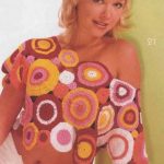 Diğer modelimiz ise hem şık hem de zarif bir model, ayrıca rengarenk örülmesiyle sizlere evde diğer örgülerinizden kalan yarım iplerinizi kullanma olanağı sağlıyor. Büyüklü küçüklü yuvarlak motifler örülerek birleştirilen bluz göbek üstü tasarlanmış. Düşük omuzlu olarak kullanılan bluz modeli genç kızlar için güzel bir seçim. Kotların üzerine veya mini şort üzerine giyilebilecek özellikle sahil kenarı şehirlerimiz de tatilini geçirecek olan bayanlar için tercih sebebi olabilir.