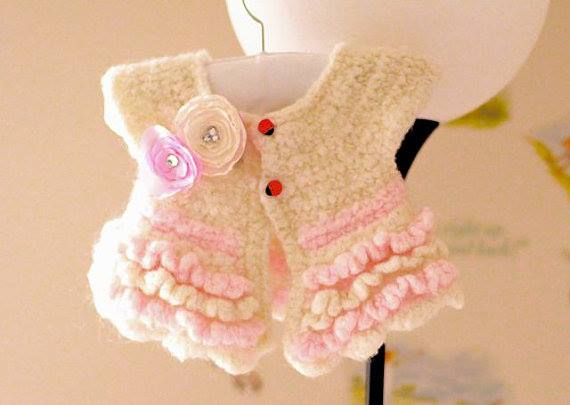 Bu galerimiz birbirinden güzel hırka ve yelek modellerini sizlere fikir vermek için hazırladım, modellerimiz gri krem ve pembe renkleri ile örülen hırka kulaklı şapkası ve tavşan kulaklı patiği ile çok şık örgü bir takım, gri yanları düğmeli önündeki kocaman cebi ile şiş düzü örgülü hoş bir örgü jile, pembe ve grinin kullanıldığı şiş ile örülen yelek ve çapraz bantlı patiği de çok şık ve kolay örülebilecek bir model.. Kahvenin tonlarının bulunduğu düz ve saç örgüsü tekniği kullanılarak baykuş işlemeli yelek modeli rengarenk düğmeleri ile cıvıl cıvıl.. Krem ve grisini göreceğiniz yelek ve şapkası sıl çiçek morifleri ile süslenmiş tığ işi bir örgü.. Krem ve pembeli yelek çiçek işlemeleri ve etek kısmındaki fırfırları ile dikkat çekici.. Mavi olarak örülen kolları renkli merserize hırka ve süslemeleri minik hanımlar için cici bici bir hırka.. Mavi uzun manto ile beresi beyaz fiyonk örgüyle süslenmiş.. Rengarenk örülen iki farklı motifli hırka modeli de cıvıl cıvıl.. Pembe beyaz olarak örülen battaniye şapka patik hırka takımı, pembe hırka beyaz pantolon takımı, pembe beyaz örülen hırka ve şapkalar, rengarenk hırka, çiçek motifli krem yelek ve patiği, beyaz örgü pembe işlemeli bebek hırka ve çantası, örgü mor hırka şapka ve patiği, rengarenk örgü çizgili hırka ve daha fazlası galerimizde..