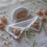İlk modelimiz beyaz olarak örülen kolayca örebileceğiniz delikli bir model kenarlarında mavi biyeler kullanılmış, ve kurdelelerle süslenmiş kulaklı şapkası ile kombinlenmiş bir uyku tulumu.. Yine aynı tulumun üzeri katlı gül motifleri ile süslenmiş şeklini, somon renkli beyaz kat güllü başka bir rengini de galerimizde görebilirsiniz..