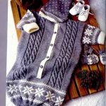 Saç örgüleri ve kar deseni ile örülen uyku tulumu, tulum, hırka , şapka patik şeklinde bir kombinasyonu yine galerimizde görebilirsiniz..