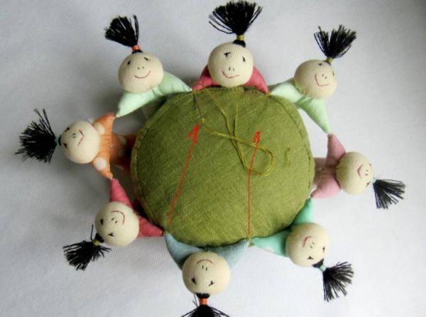 Önceki görselSonraki görsel 35 34 bebekli iğneliğin son hali Daha sonra bir iğne iplik ile yastığın tam ortasını sabitleyelim.