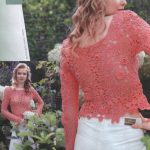İkinci modelimiz ise göbek üstü tasarlanan spor bir çiçek motifli örgü bluz, Yine iki renk kullanılmış; beyaz ve orange renkleri ile genişi kıskandıracaksınız. Beyaz çiçek motifleri orange rengi ile örülen su taşı ile model verilirken file modeli ile de birleştirilmiş. etek kısmındaki zikzaklı şekil ise çiçeklerin dizilişi ile oldukça uyumlu bir şekilde tasarlanmış. Hafif düşük kol olarak inen kollar beyaz renk ile file şeklinde örülerek tamamlanmış. Yaz aylarında, sahil kenarlarında gençlerin rahatlıkla giyebilecekleri şık ve gösterişli bir örgü kazak modeli. İsteğinize göre boyunu uzatarak da tasarlayabileceğiniz modeli tunik şeklinde de kullanabilirsiniz.