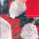 İkinci modelimiz ise yine tığ ile örülmüş ana rengi siyah olan diğer şal modellerinden farklı olarak daha kısa omuzlarımızı örtecek şekilde tasarlanmıştır. yuvarlak yaka boyundan bir düğme ile birleşen modelimizin uçları büyük renkli kelebek örneği ile renklendirilmiş ve çok hoş bir görüntü oluşmuştur. Diğer modelimiz ise bahar aylarında evlilik planı yapan gelin adayımızın bile düğününde omuzlarına atabileceği güzellikte bembeyaz bir şal modeli. üçgen şekli ile düz örgü ile modellendirilen şal örneğinin üç kenarı dantel modeli ile ince ince örülmüştür. ince yün bir ip ile örülen şal ayrı bir güzellik içine girmiştir. Kenarlardaki dantel modeli hem bir çiçek desenini hem de güzel bir kelebek şeklini andırarak güzel bir örnek seçimi yapılmıştır. En güzel en yeni modelleri ile örgü şalları omuzlarınızda görmek isteriz.