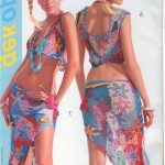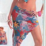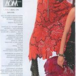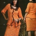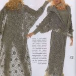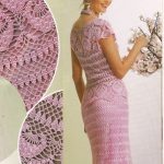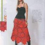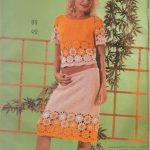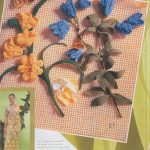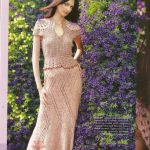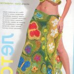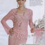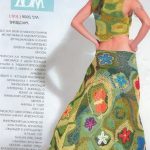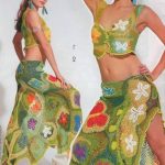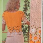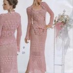 İlk modelimiz bluz ve etek den oluşmaktadır; Çiçek örneği verilmiş modelde örülen takım tek bir ana renkten oluşmaktadır, ancak etek ve bluzun kenarları koyu kahve rengi ile şeritler çekilerek tamamlanmıştır. Ayrıca bluzun yakası dantel edasında koyu kahve rengi ile örülmüş, bluzun etek uçları kol ağızları ve ön orta kısmına şeritler çekilmiştir. ayrıca etek uçlarında da aynı şeritler bulunmaktadır. Yarım kol örülen bluzun kol uçları ters v şeklinde genişlemektedir.