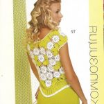 Diğer modelimiz rengi ve modeli ile yaz ayları için tasarlanmıştır, fıstık yeşili ve beyaz renk kullanılarak örülen derya baykal bluz ve mini dar el işi etek modeli oldukça şık ve iddialı bir takım. Bluzun kolları hafif bir şekilde omuzlara dökülüyor, yuvarlak yaka olarak tasarlanmış, bluzun ön ve arka etekleri v şeklinde aşağı iniyor, bedeninde ki örnek ise son günlerin moda örneği olan büyük çiçek ve yaprak motifleri birleştirilerek tamamlanmıştır. Çiçekler beyaz renkli ip ile yaprakları ise fıstık yeşili renk ile örülmüştür. Tabi beyaz renk bir de bluzun kollar yakası ve etek kısmının tığlanmasında kullanılmış çok kibar ve zarif bir örgü bayan takımı örülmüştür. Rahatlıkla giyilebilecek bir takım.