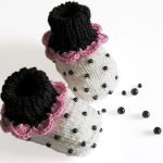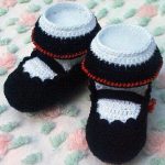 İlk model siyah beyaz tığla dolgu örgü tekniği ile örülmüş kırmızı ile de biyelenmiş şık bir patik örneği..