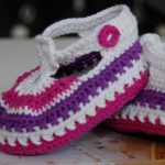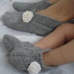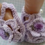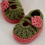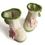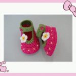 Pembe ve yeşilin kullanıldığı bilekten kalpli bir düğme ile tutturulan beyaz bir papatya motifi ile süslenmiş patiği görünce kızımın bebekliği aklıma geldi 🙂 onda örmüştüm benzeri bir patik 🙂