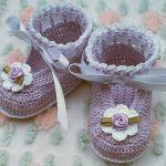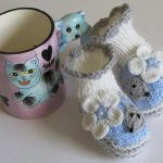 Kedi ve papatya motifleri ile süslenmiş gri mavi ve beyaz kullanılarak örülen bebek patiği de çok cici duruyor..ve daha fazlası galerimizde..