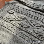 İkinci modelimiz ise boydan fermuarlı lacivert renkli yarım boğazlı, iki ön tarafta fermuara yakın olarak boydan desen verilen baklava dilimi modeli ile tasarlanan bir hırka modeli var. Yaka, kol ve eteklerinde lastik örgü ile tasarlanan hırka modeli çok şık ve çok kullanışlı bir model olarak kendini gösteriyor.  Baklava dilimlerini yanına yerleştirilen desen kol üst tarafına da verilerek desen uyumu sağlanmıştır.