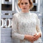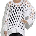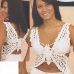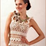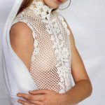 İkinci bluz modelimiz ise oldukça iddialı, giyilmesi cesaret isteyen, kendine güvenen bayanlarımızın tercih edeceği çok şık bir beyaz renkli örgü bluz modeli. Tamamen beyaz renk ile örülen, sıfır kollu ve küçük yuvarlak motifler ile iki sıra örülerek boğazlı olarak tasarlanan bluz modeli; ana deseni file modeli ile örülmüş ancak kol ağızları etek uçları ve yakası ile birlikte ön kısmının ortası çiçek motifleri ile işlenerek boğazdan aşağı doğru inen çiçek motifleri ile süslenmiştir. Etek kısmanda ise yine aynı motifler sallandırılarak süslemeler yapılmıştır. Cesaretiniz ile yürekleri hızlandıracağınız, vücuduna güvenen bayanların tercihi olan ayrıca sahil bölgelerinde de büyük bir şıklık ile giyilebilecek bir örgü dekolteli bluz modeli.
