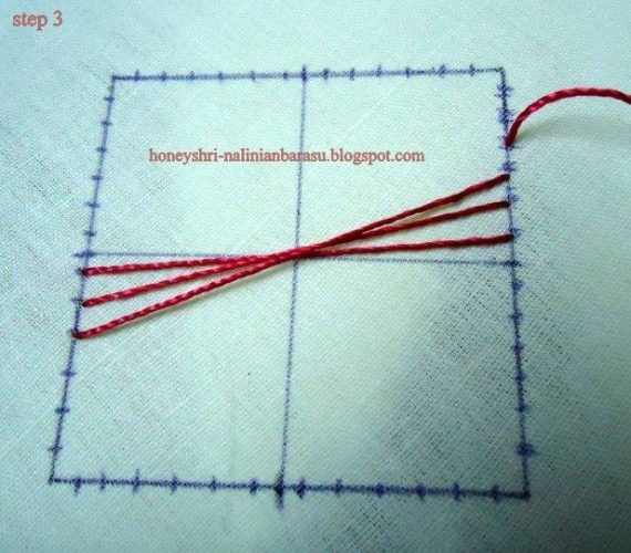 İşleyeceğimiz ip ile sol alt bölmemizden ilk santimden sağ üst karenin ilk santimine çapraz olarak işliyoruz. Bu işlem 2 ye 2 3 e 3 olarak gidiyor.
