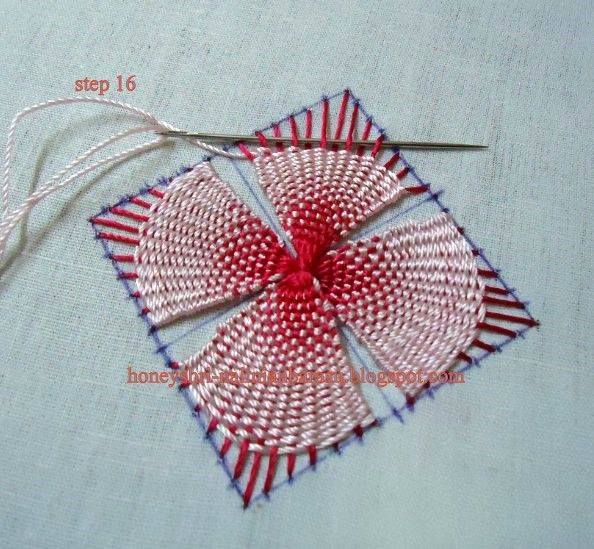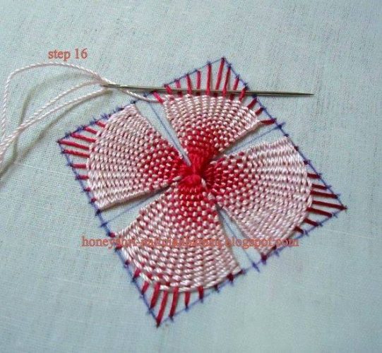 daha sorna diğer ip ile işlediğimiz iplerin bir altından bir üstünden işliyoruz . Bu şekilde motifimizi ortaya çıkarmış bulunmaktayız .