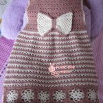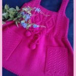 İlk modelimiz Yaz aylarında rahatlıkla giyebilecekleri, uçuk pembe renkli tığ ile örülen yağmur damlası deseninde ki şık bir elbise tasarımı; Askılı olarak tasarlanan elbise modeli bel kısmı dar belden aşağı eteklere doğru açıklan ve eteklerde başlayan yağmur damlası modeli ile yaz aylarında bir güneş gibi parlayacak minik mankenler. Bolerosunu yapmayı da unutmayın lütfen anneler…