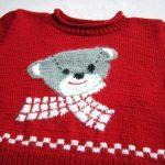 İlk modelimiz koyu kırmızı bordoya yakın bir ton ile hazırlanan yarım boğazlı uzun kollu düz örgü ile örülen ancak kazağın ön kısmına yerleştirilen sevimli ayıcık deseni ile çok şirin bir model. atkılı deseni ile ayıcık kafası şeklinde verilen desen kazak örülürken aynı anda deseni de verilerek tamamlanıyor. yakın çekim resimleri ile size örme kolaylığı ve model çıkarma kolaylığı sağlayacağını düşündüğüm modeli örerken büyük bir haz duyacağınıza eminim.
