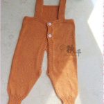 Tulumu ise düz örgü deseni ile şiş yardımı ile örülmüş, önden iki düğmeli, kalın askılı tek renkli çok şirin bir tulum modeli, bir iki yaşına kadar bebeklerde çok daha fazla giydirilen tulumlar hırkası ile çok güzel bir kombine oluşturmuş.