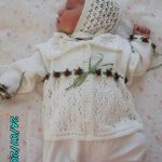 İkinci modelimiz ise beyaz renkli örülen ceket yakalı göğüs altı sırtını da saracak şekilde tek sıra olarak hazır kırmızı güller dikilerek model verilmiş muhteşem tasarımlı bir hırka modeli. Aynı güller kol ağızlarına da dikilmiş ve acur deseni ile örnek tamamlanmıştır. ön kısmında kurdelenin üstüne dikilen güller yine iki önü birleştirmek için kullanılmış. Şapkası ile takım örülen hırka şapka modelini çok beğeneceksiniz.