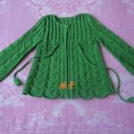 İlk modelimiz çok hoş bir tulum takımı ve hırkası; delikli acur modeli ile eteklerine ve kol ağızlarına verilen modeli ile kendinden ip kıvırma ile yapılan kemeri ile çok şık bir örgü hırka modeli. iki yanı çapraz olarak kapatılan ve kendinden kemeri ile arkadan bağlanan hırka da v yaka kullanılmış ve kol ve etek kenarlarına zikzaklı şekil verilmiştir.