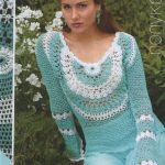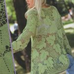 Diğer modelimiz ise Tunik şeklinde örülen yeşil renkli yaprak desenleri ve üzüm salkımını anımsatan küçük halkaların birleştirilmesi ile tasarlanmış yaprak ve üzüm parçaları file modeli ile muhtazam bir şeklide birleştirilmiştir. İlk bakışta farklı bir model ve tasarım olduğu belli olan yeşil renkli yaprak ve üzüm salkımı desenli bluzun etek kısımları lastik ile bitirilmiş. Siz de bu yeni model ile isterseniz çocuklarınıza isterseniz de kendiniz için yeni bir kıyafet tasarlayabilirsiniz.