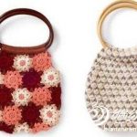 İlk modelimizde aynı şekildeki iki farklı çanta bulunmaktadır. Deseni ve renkleri farklı olan çantalarımızın ikisinde de hazır ahşap kulp kullanılmış ve el çantası olarak tasarlanmıştır. Modelin birinde renkli ipler ile hazırlanan motifler birleştirilerek hazırlanmış diğerinde ise motifsiz desen verilerek hazırlanmıştır. Her iki çanta modeli de tığ yardımı ile örülmüş şık ve gösterişli çantalardır. Çiçekli modelimiz daha çok spor kullanıma uygun diğeri ise klasik kullanıma uygun olarak tasarlanmıştır.