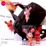 Çanta : Pembe renkli küçük el çantası modeline super inci 2000 renk numaralı ip ile 40 ilmek çekerek başlanır, düz örgü ile devam edilir. 1 cm ördükten sonra, 21237 renk numaralı ip ile 1 sıra devam edilir, 1 cm ise yine super inci 2000 renk numaralı ip ile örülerek, tekrar 1 sıra 21237 renk nolu iplik ile örgüye devam edilir, ….. şeklinde toplamda 34 cm örüldükten sonra 1 cm super inci 2000 renk numaralı ip ile düz örgü örülüp, bütün ilmekler bir defada kesilerek bitirilir. Örülen dikdörtgen parça iki ucundan birleştirilerek bu iki uç çantanın ağız kısmı olarak kullanılır ve buraya çanta sapı dikilir. Her iki yan tarafta birbirine dikilerek havlu çantamız tamamlanır.