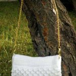 İkinci modelimiz ise bir örgü eseri olarak karşımızda; kar beyaz renginde, baklava dilimi, saç örgüsü ve çam ağacı desenleri ile örülen çanta, kendinden yine örgü kemerli kapağı ile oldukça şık ve gösterişli bir çanta modelidir. Kulp olarak da örgü kulp kullanılmış ve çok da isabetli bir karar verilmiştir kulp seçiminde. Yaz aylarının en dikkat çekici rengi olan beyaz renkli çantamız gösterişi ile dikkatleri çekecektir, model almak için yolda önünüzü keseceklerine eminim.
