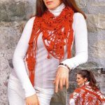 İlk modelimiz, podyumlardan bayanların boynunu saran şiş ile örülmüş ve saç örgüsü modeli verilmiş daha çok panço şeklini anımsatan ancak ebat olarak daha küçük olan şık bir fular modeli.