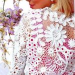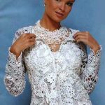 Yine beyaz V yakalı çiçek ve yaprak desenli dantel hoş bir model abiyelerle bile kullanılacak nitelikte..