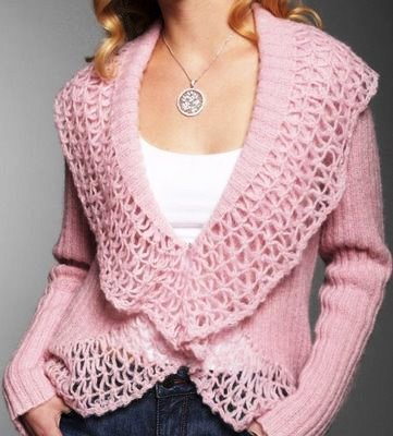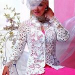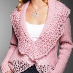 Lila dantel tığ işi uzun kollu abiye bir hırka modeli daha..Kalın desenli ip ile örülmüş lacivert renkli kısa hırka modeli de ilginizi çekebilir..