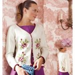 Krem renkli şiş ile örülen mürdü biyeli ve çiçek işlemeli hırka modeli hazırlarını aratmayacak kadar hoş görünüyor..