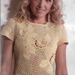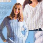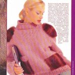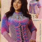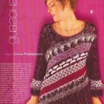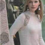 İkinci model ise yine çok farklı bir tasarım; yarım boğazı ve kol uçları aynı örnek ile örülerek bir bütünlük sağlanmış ana model düz örgü ile örülmüş ancak göğüs üst yanları boğazdan koltuk altına doğru sonradan çiçek motifleri ile örülen parçalar dikilerek çok hoş bir ayrıntı yakalanmış. Klasik giyim içinde spor giyim içinde uygun çok şık bir örgü kazak modeli.