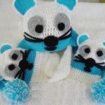 Ayıcık görünümlü beyaz ve mavinin hakim olduğu bir bere ve kaşkol takımı tığ ile işlenmiş kolay bir seçenek..