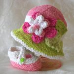 Koton şiş işi düz örgülü çiçek ve yaprak motifli kasket şapka ve çapraz bantlı patik takımıda çok şirin görünüyor..