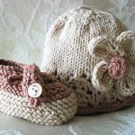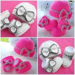 Krem ve sütlü kahve tonlarında şiş ile örülen çiçek motifi dikilmiş şapkası ve çapraz bantlı bebek ayakkabısı takımı kolayca örebileceğiniz hoş bir fikir önerisi..