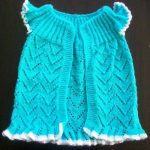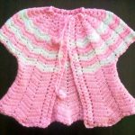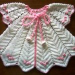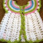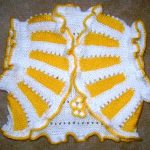 Sarı ve beyaz tığ ile örülen kolay basit bir hırkada minikler için ideal olabilir.. Beyaz örgü pembe biyeli ve süslemeli kelebek şekli verilmiş ilginç ve farklı bir model..