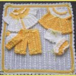 Dantel olarak tığ ile örülmüş pembe beyaz tek düğmeli yarım kollu yelek ve beyaz dantel elbise hoş bir ikili olmuş. Hırka patik ve şapka örneğinde hırka şapka ve patik örülmüş şık bir takım olmuş.. Yeşil üzerine beyaz biyelerle örülen haraşo ve mini saç örgü desenli bir yelek..