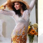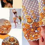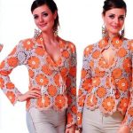 Tığ işi motiflerle birleştirilerek örülen krem ve portakal kruvaze uzun kollu bluzu da çok beğeneceksiniz..