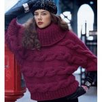 Yada mürdüm yandan saç örgülü boğazlı kazak gerek rengi gerek deseni gerekse modeli ile oldukça güzel örgü bir kazak..