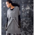 Gri kolsuz tunik görünümlü kazak düşük kollu düz ve lastik örgü tekniği kullanılarak örülmüş kuşaklı başka bir örnek vitrindekiler kadar şık ve kullanışlı..