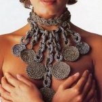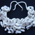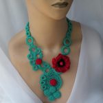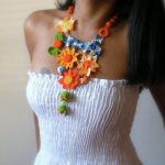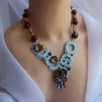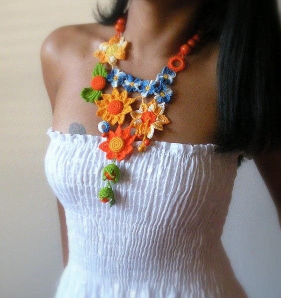 Straplez bir elbise ile kullanabileceğiniz motiflerle örülen kolye modeli de çok hoş bir fikir..