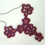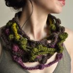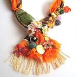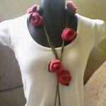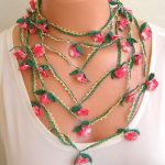 Yine katlı gül motifleri ile rengarenk birleştirilerek yapılmış örgü motifli kolyede çok hoş görünüyor..