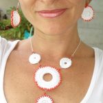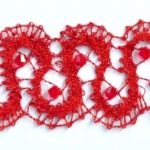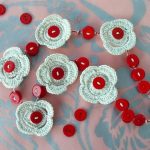 Kırmızı düğmelerle ve krem iple çiçek motifli uzun kolye de genç kızlarımız için çok şık bir kolye örneği..