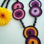 Yuvarlak motiflerle ve siyah boncuklarla yapılan kolye çok basit bir örgü örneği motiflerde kullanacağınız renkleri kıyafetlerinize göre değiştirebilirsiniz..