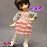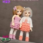 İkinci modelimiz de ise oyuncak bebekler için tasarlanmış fuşya renkli uzun kollu yakası ve kol ağızları kırmızı meyveler ile işlenmiş ilk bakışta verilen emeği gösteren şık bir oyuncak bebek kıyafeti var. Şiş ile düz örgü şeklinde örülen elbise ev botları ile de takım olarak tasarlanmış, elbisenin modelinde ve renginde örülerek üzeri süslenmiştir. Baştan aşağı örgü ile giydirilen oyuncak bebek kıyafetleri saç tokasından çorabına ev botundan elbisesine muhteşem bir uyum ile örgünün şıklığını göstermektedir.
