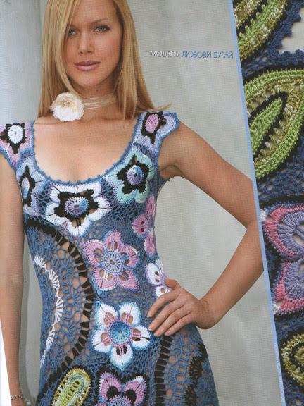 İlk modelimiz adeta baharın habercisi olan bir model ve renklerle karşımızda rengarenk çiçek ve yaprak motifleri ile örülen ve çok muntazam bir şekilde birleştirilen elbise modelimiz içimizi aydınlatıyor. Derin göğüs dekoltesi ile sıfır kollu olarak tasarlanmış, ayak bileklerine kadar inen boyu ile rahatlığın ve özgürlüğün habercisi gibi. Tığ ile örülen modelimizi elinizde bulunan değişik renkli yarım kalan ipleriniz ile isterseniz kendinize isterseniz de çocuğunuza şık bir elbise örebilirsiniz.