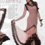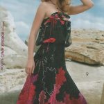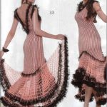 İkinci modelimiz ise tam bir ispanyol elbisesi modelinde tasarlanmış oldukça gösterişli ve zarif bir elbise modeli. v yakalı elbise modelimiz keskin hatlara sahip v şekli ile de sırt dekoltesi verilerek tasarlanmış, diz altından sonra file modeli pileli şekilde örülerek çok şık bir şekil almış, modelin belirginleştirilmesi için sakallı siyah renkli ip ile etrafı çizilen model oldukça iddialı bir tasarım. Etek uçlarındaki pileye eklenen katlı görünüm ile yaz ayının rahatlığı ve şıklığı tek bir elbisede sizlere sunuluyor. Sıfır kollu tasarlanan elbisenin modeli üzerinden dikey olarak inen siyah çizgiler ise fiziğinizin zarifliğini gözler önüne serecek. Elbisenin en gösterişli kısmı olan pileli etekleri uzunlu kısalı boyu ile daha da göz kamaştırıyor ve dikkatleri üzerine çekmeyi başarıyor.
