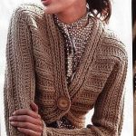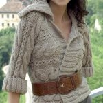 İkinci modelimiz ise klasik giyim tarzından yana seçim yapan özellikle çalışan bayanlar için çok şık ve gösterişli bir örgü hırka modeli; vizon rengi ile örülen hırka modeli yatay saç örgüsü modeli ile tasarlanmış ve boğazlıklı yakasının altında ayrı bir gömlek yaka örülerek, kalın lastik modeli verilmiş.kol dirseklerinde biten desenli modelin devamında yine katlanabilir lastik modelli bir şekil verilerek hırka tamamlanmış. üzerine takılan kalın kahve rengi tokalı kemer ise hırka ile bir bütünlük oluşturarak uyumlu şekilde kendini gösteriyor. klasik giyim tercihi yapan bayanlar veya genç kızların dar mini etek veya kumaş pantolonun üzerine giyebilecekleri güzel bir örgü hırka modeli.