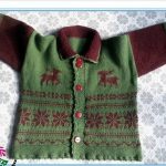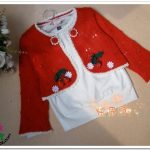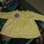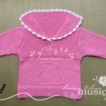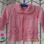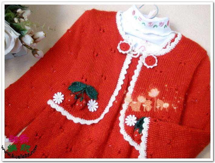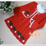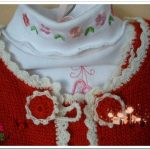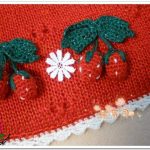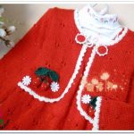 İkinci modelimiz ise ilk modelimiz olan çilek süslemeli elbise modelinin takımı olan kırmızı renkli yine çilekli bir kısa hırka modeli; kırmızı acur deseni ile örülen uzun kollu mini hırka modelinde hırka kenarları beyaz renk ile tığlanmış küçük ve önemli bir ayrıntıya sahip. İki yaka kenarına beyaz ve kırmızı renkte örülen iki çiçek motifi dikilmiş ve etek kısmında yine iki yana örülen çilekler dikilerek aralara beyaz çiçek motifleri serpiştirilmiştir. Elbisesi ile tam bir uyum içinde örülen hırka modeli ve elbisesi her kız çocuğunun sahip olması gereken bir elbise özelliğindedir.