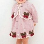 Bebekleriniz için en güzel örgüleri ve değişik modelleri ile karşımıza çıkan örgü bebek kıyafetleri sizi yeniden anne olmak düşüncesi ile baş başa bırakacaktır. İlk modelimiz bahsettiğimiz muhteşem modellerden bir tanesi; kırmızı renkli küçük çilek şekli verilmiş meyveler ile süslü çok şirin bir elbise modeli. Yuvarlak yaka sıfır kollu olarak tasarlanan kırmızı renkli elbise modelimiz kabartma küçük fındık modeli ile desenlendirilmiş ancak bu modelden çok rengi ve küçük küçük hazırlanan siyah benekli yeşil yapraklı örgü çilekler ile süslenen etek uçları dikkatleri çekiyor. Çileklerin aralarına dikilen beyaz renkli küçük papatyalar ise bir çilek bahçesini hatırlatmaya yetiyor.